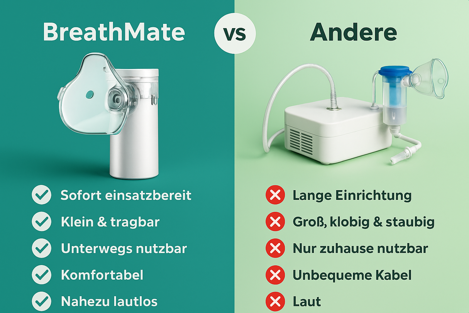 Bei der Gesundheit deines Kindes reicht „gut genug“ nicht aus. Viele Inhalatoren sind laut, unhandlich und unzuverlässig. Das macht schwierige Momente noch anstrengender.